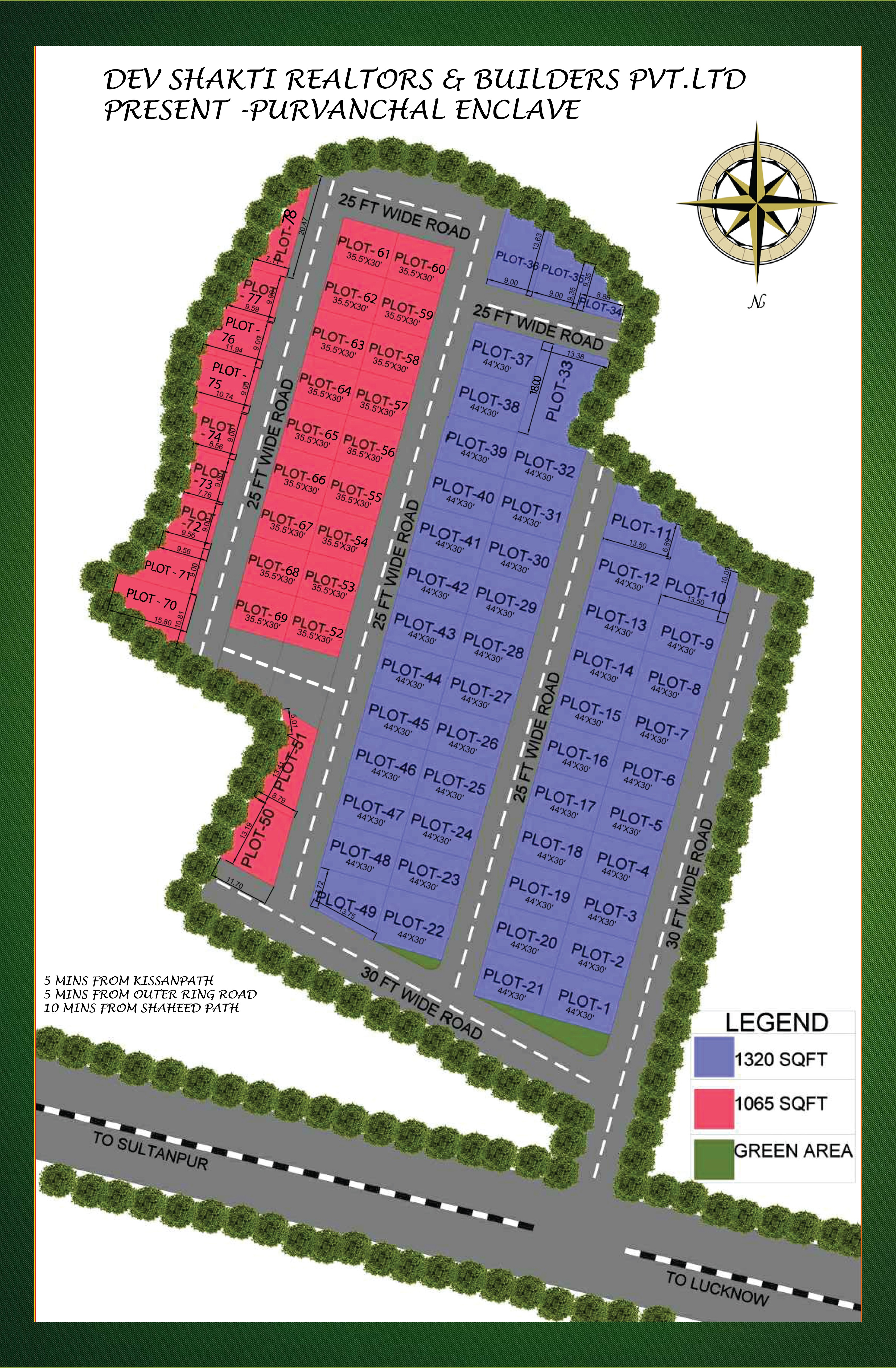 Dev Shakti Realtors & Builders Pvt. Ltd. has been constantly making an effort to make life enhancing and beautiful for you and we have succeeded to a certain extent. We have efficiently sketched people's dream and constructed it in reality. We promise to deliver you with a masterpiece of wonder and charm that will make you fall in love. PURVANCHAL ENCLAVE offers one of the best residential communities. The same has been constructed with intent to define a campus with all necessary features, thereby defining a self-contained residential land. It is heavily modernized and has some of the beautifully cultivated gardens that are sure to sweep anyone of his or her feet. The society is well equipped to meet up your leisure activities and modern fun and at the same time connects you to the greeneries. The lifestyle offered here will surely make you think twice before you reject. Though it is a little far from the city; the golf car facility helps to minimize the problem and allows you to rest in the wings of nature..
