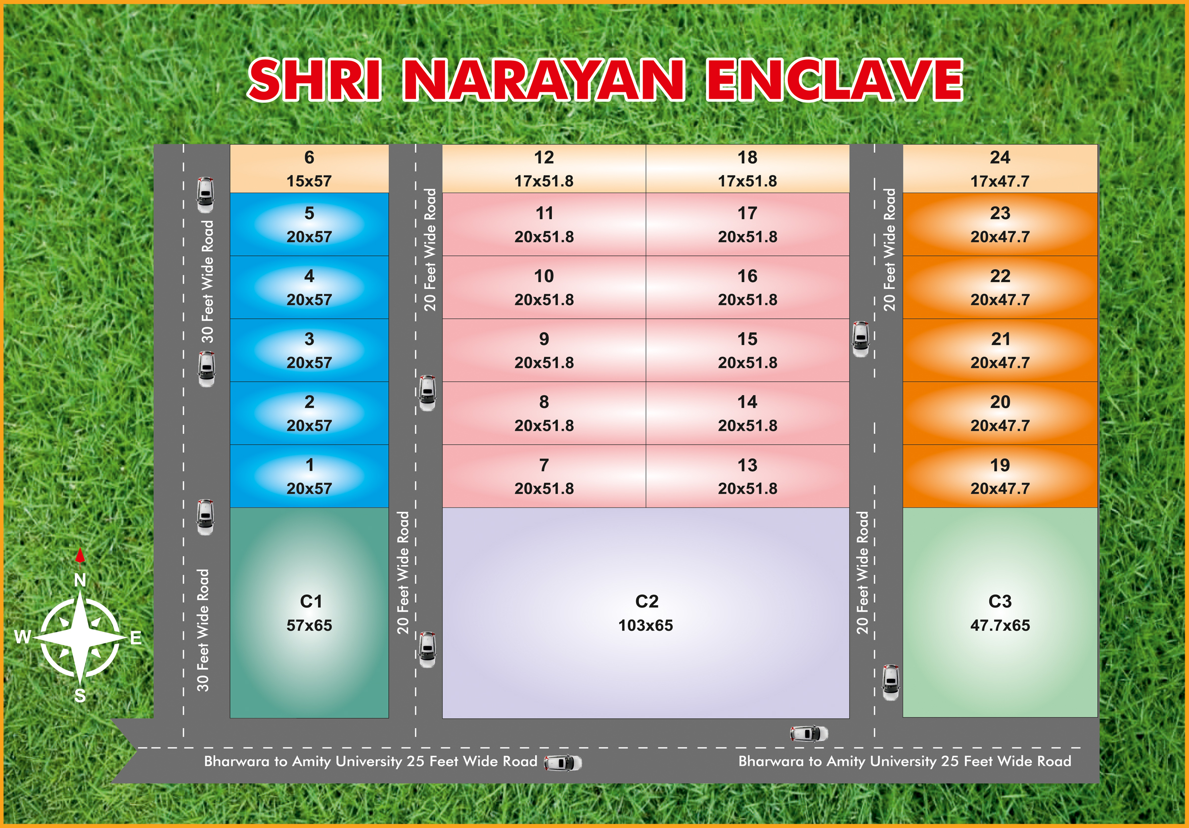 Dev Shakti Realtors & Builders Pvt. Ltd. has been constantly making an effort to make life enhancing and beautiful for you and we have succeeded to a certain extent. We have efficiently sketched people's dream and constructed it in reality. We promise to deliver you with a masterpiece of wonder and charm that will make you fall in love. SHRI NARAYAN ENCLAVE offers one of the best residential communities. The same has been constructed with intent to define a campus with all necessary features, thereby defining a self-contained residential land. It is heavily modernized and has some of the beautifully cultivated gardens that are sure to sweep anyone of his or her feet. The society is well equipped to meet up your leisure activities and modern fun and at the same time connects you to the greeneries. The lifestyle offered here will surely make you think twice before you reject. Though it is a little far from the city; the golf car facility helps to minimize the problem and allows you to rest in the wings of nature..